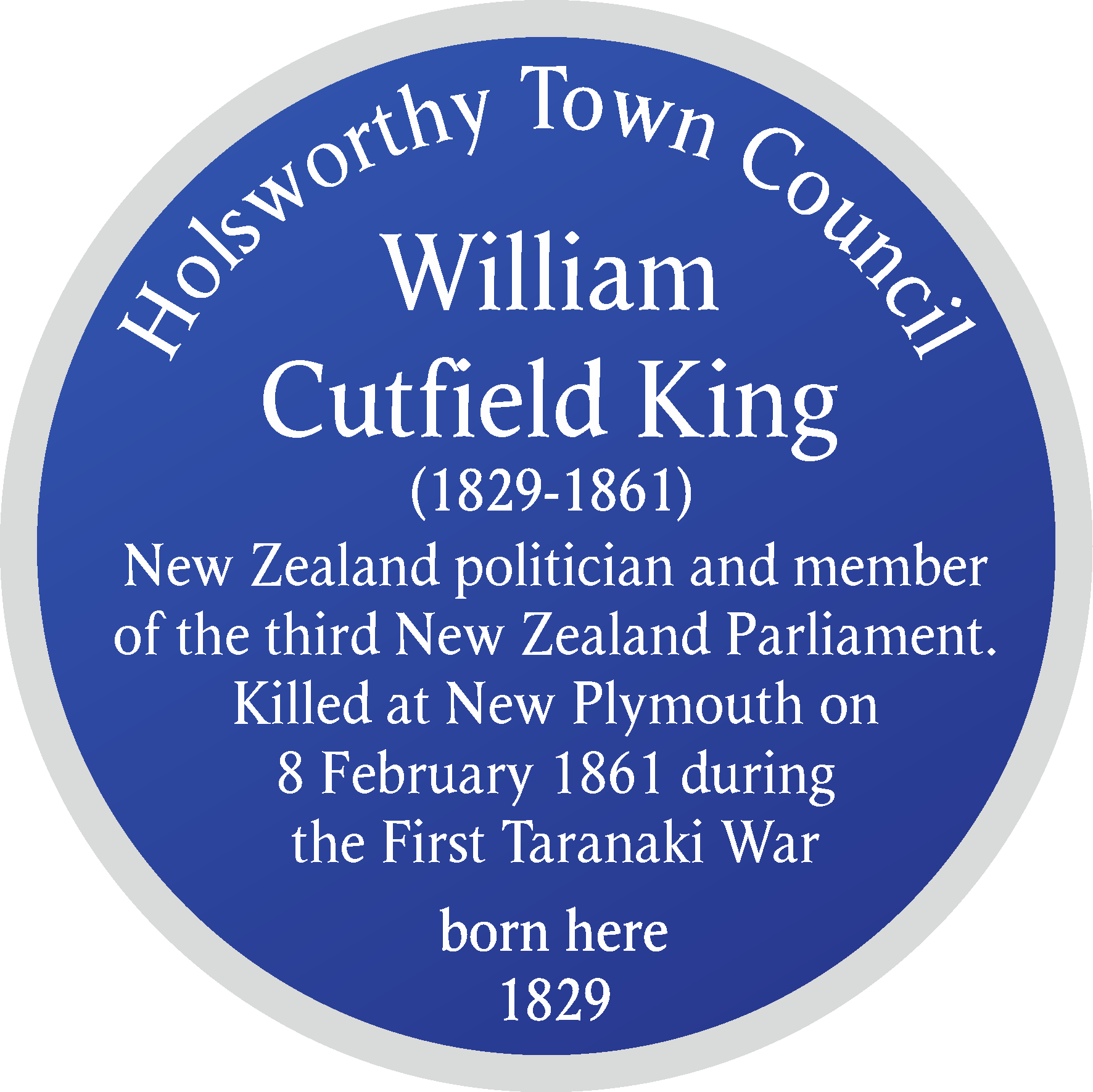 As is Henry’s son, William Cutfield King - born at Park Villa in 1827, and baptised in Holsworthy in February 1828. With his formative years spent in and around the town, William can be classed as a true son of Holsworthy. Aged 12, he left with his parents to settle in New Zealand. 19 years later, on 27 November 1860, William stood for, and was successful in winning a seat in the Third New Zealand Parliament, though was never to take his seat - shot and killed on his homestead during the First Taranaki War on 8 February 1861